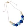- Material: Cada pelotita es de madera y alguna de ellas está tejida a crochet con lana de algodón. Posee una esfera con nudos completamente seguros. Puedes alargar o acortar el collar de acuerdo a lo que tu estimes conveniente.